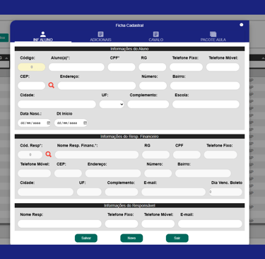 Cadastro de alunos e gerenciamento de aulas.